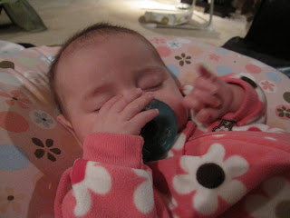 Reese rolled over today! Those little milestones are the greatest accomplishments to a new mom ever! Today we were giving Reese some tummy time. Lately she's been pulling her leg up like she wants to roll over but has seemed pretty far away from it. We moved her arm for her today and she got to rocking around again. All of a sudden, she just whipped right around and landed on her back. The whole room cheered and clapped. It was one of the most exciting things ever. I just love seeing her do new tricks, it makes me feel so proud and so happy, how do people not just burst right open with all this love?